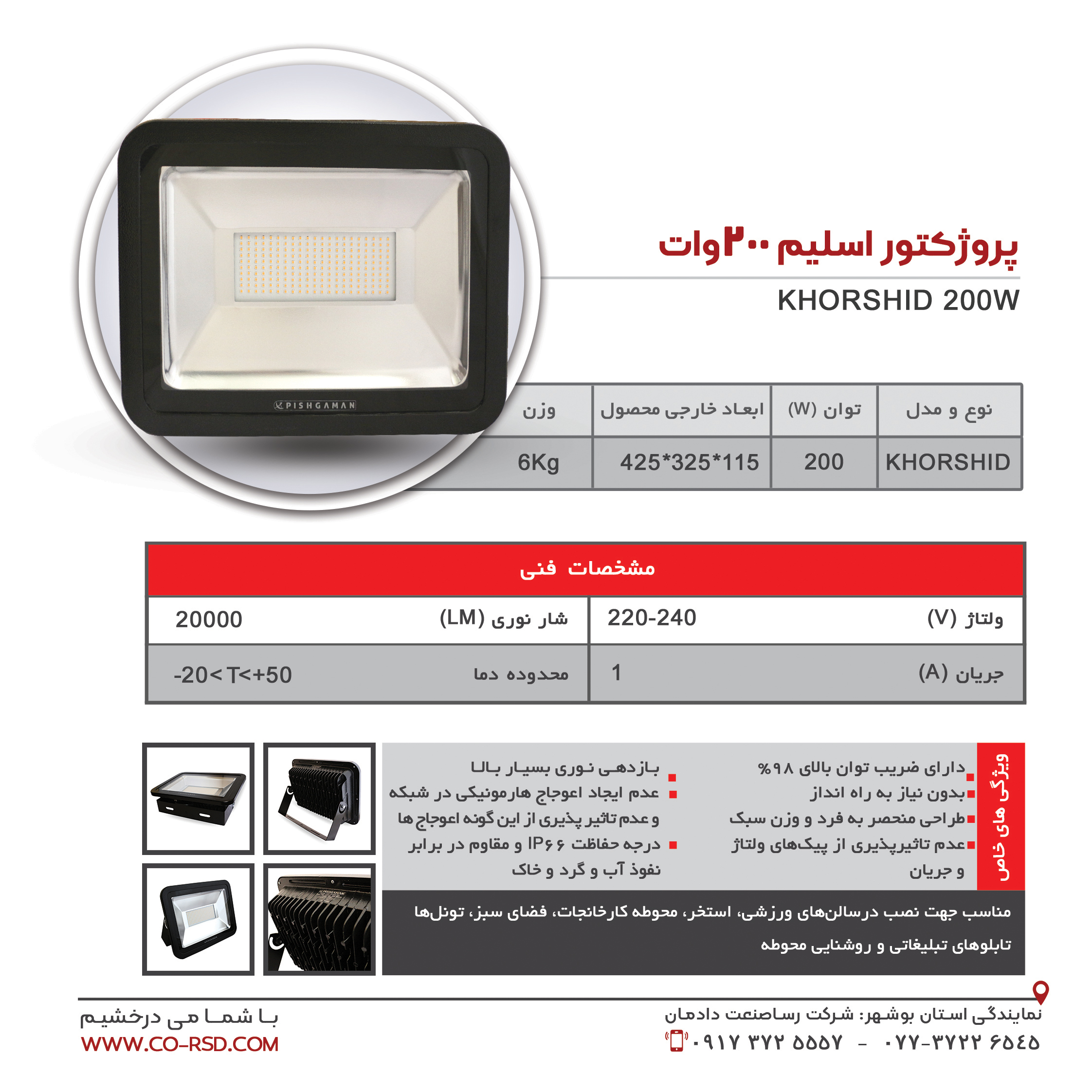 با پروژکتور اسلیم 200 وات، نورپردازی قدرتمند و کارآمد را تجربه کنید! طراحی باریک و شیک آن، مناسب برای محیطهای داخلی و خارجی است. با مصرف انرژی کمتر، نوردهی بیشتری داشته باشید و فضای خود را با روشنایی بینظیر متحول کنید. همین حالا سفارش دهید و از تخفیف ویژه بهرهمند شوید!